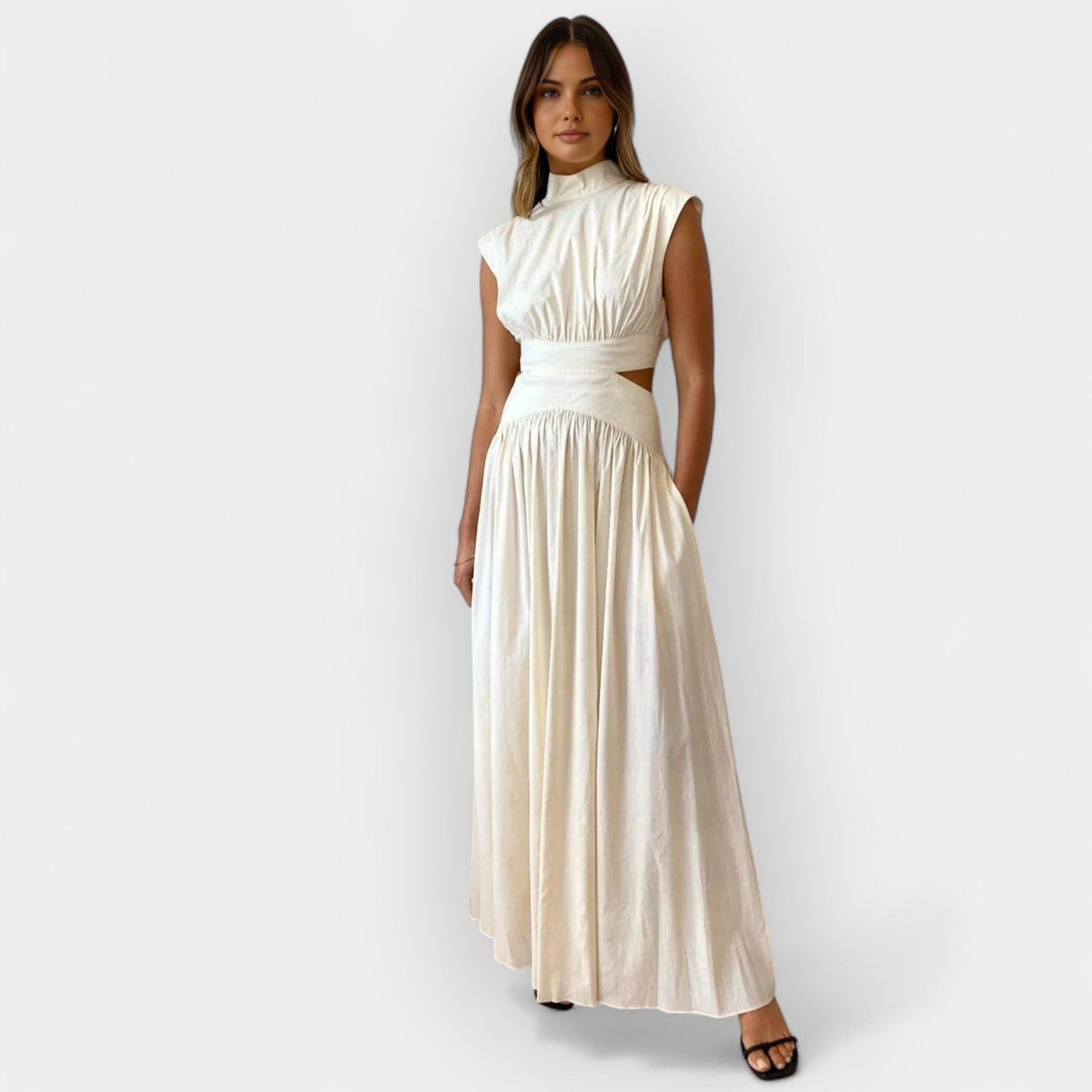 Odkrijte osupljivo obleko, ki združuje zaprt izrez z modernimi odprtinami, kar ponuja sodobno in ženstveno silhueto. Idealna za posebne večerne dogodke z diskretno drznostjo.